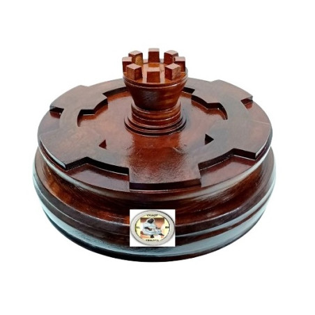 Batea de changó de primera calidad elaborada con madera de iroko de forma artesanal, todas las bateas de nuestro catalogo se ajustan a los Pilones, diámetro 31 cm, altura con tapa 21 cm